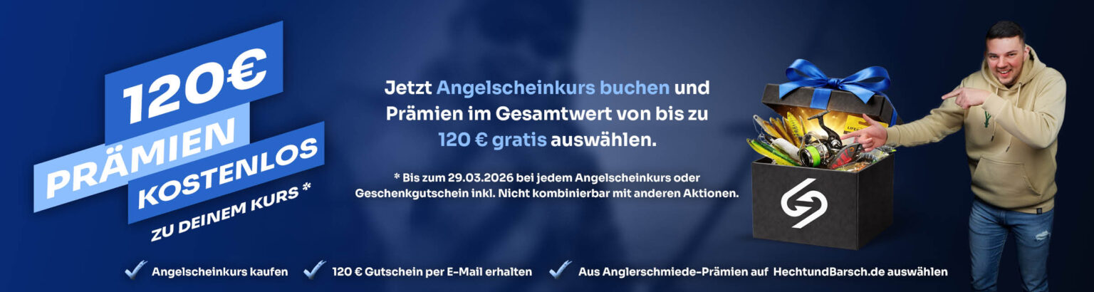 Nach Abschluss des Lehrgangs erhältst du die Anmeldeunterlagen, mit denen du dich zur Fischerprüfung anmelden kannst. Nachdem du die Anmeldeunterlagen ausgefüllt hast, ist eine Gebühr von derzeit 25 Euro zu entrichten, wenn du unter 18 bist, dann nur 18 Euro.